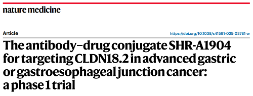 利来医药CLDN18.2 ADC创新药SHR-A1904治疗胃癌临床研究结果荣登Nature Medicine